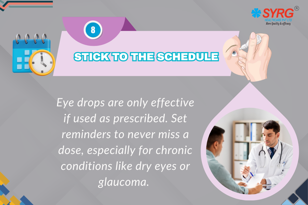 Eye drops only work when used consistently. Skipping doses or using them irregularly can delay healing and may worsen your condition. On the other hand, overusing them can cause unwanted side effects. To stay on track, set reminders on your phone, use sticky notes, or follow your doctor’s written instructions carefully. Think of your schedule as part of your treatment—it’s not just about the drops, but about the discipline of using them correctly. Consistency ensures your eyes get steady care and healing without interruption.