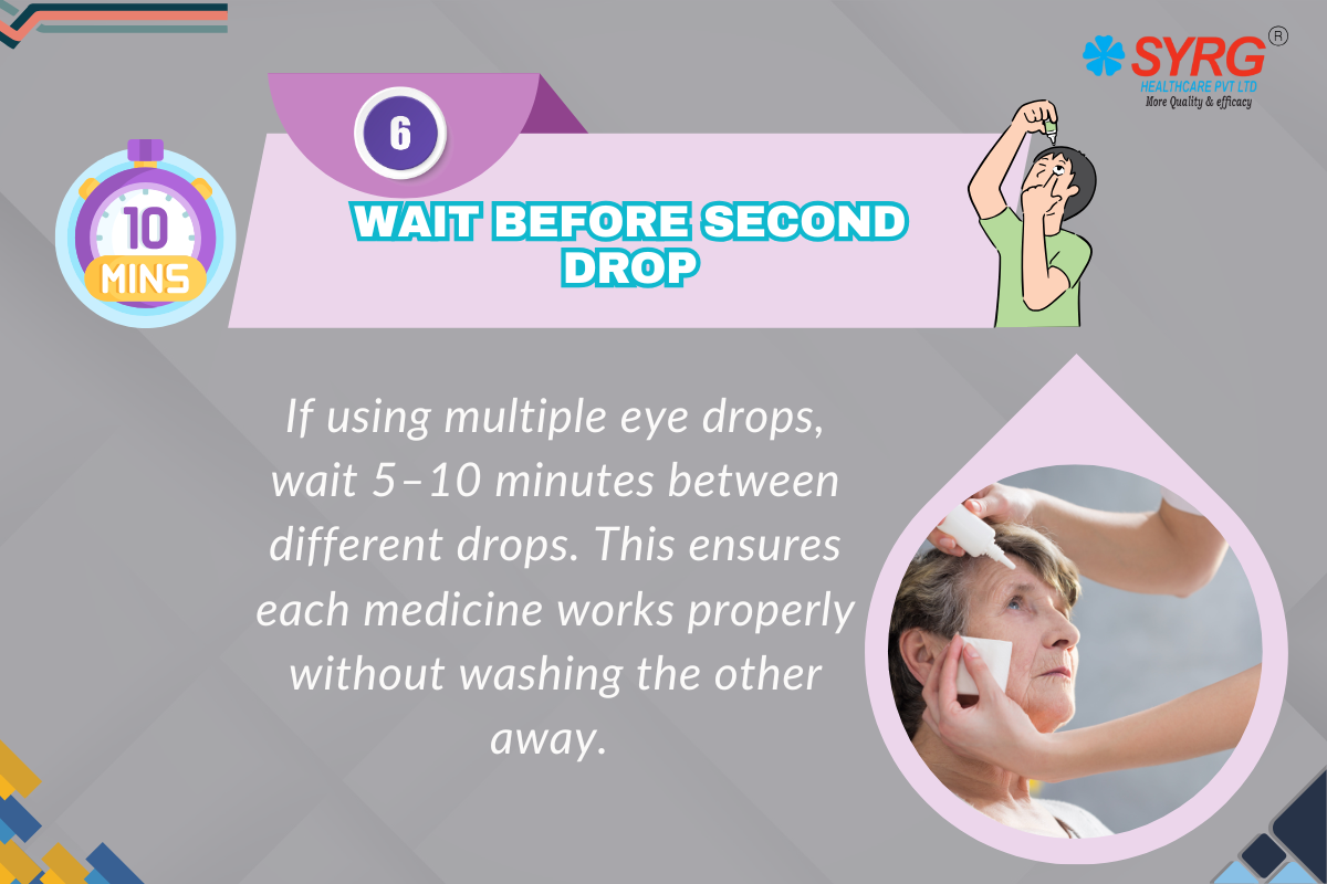 If you’ve been prescribed more than one type of eye drop, patience is key. Applying different drops back-to-back can cause the second one to wash away the first, reducing both of their effectiveness. Always wait at least 5 minutes before applying a second type of drop. This short pause allows the first medication to be absorbed properly into your eye tissues. If you’re also using an eye ointment, apply it last, since it can form a barrier that prevents drops from being absorbed. Think of it as giving each medicine its own time to shine.