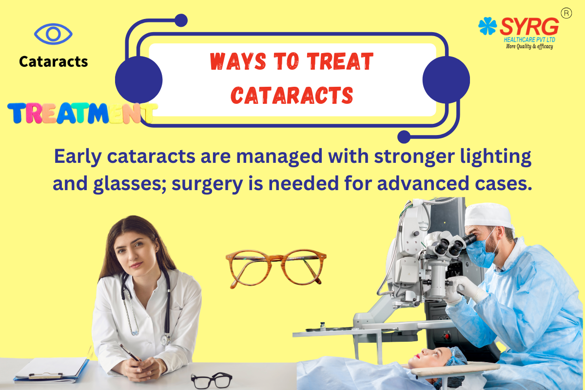 In the early stages, vision problems from cataracts can be managed with stronger glasses, magnifying lenses, anti-glare sunglasses, or brighter lighting. However, as cataracts progress and interfere with daily activities, surgery becomes the only effective treatment. Cataract surgery is a safe and commonly performed procedure where the cloudy lens is replaced with a clear artificial one. New techniques like laser-assisted cataract surgery have made recovery faster and outcomes even better.