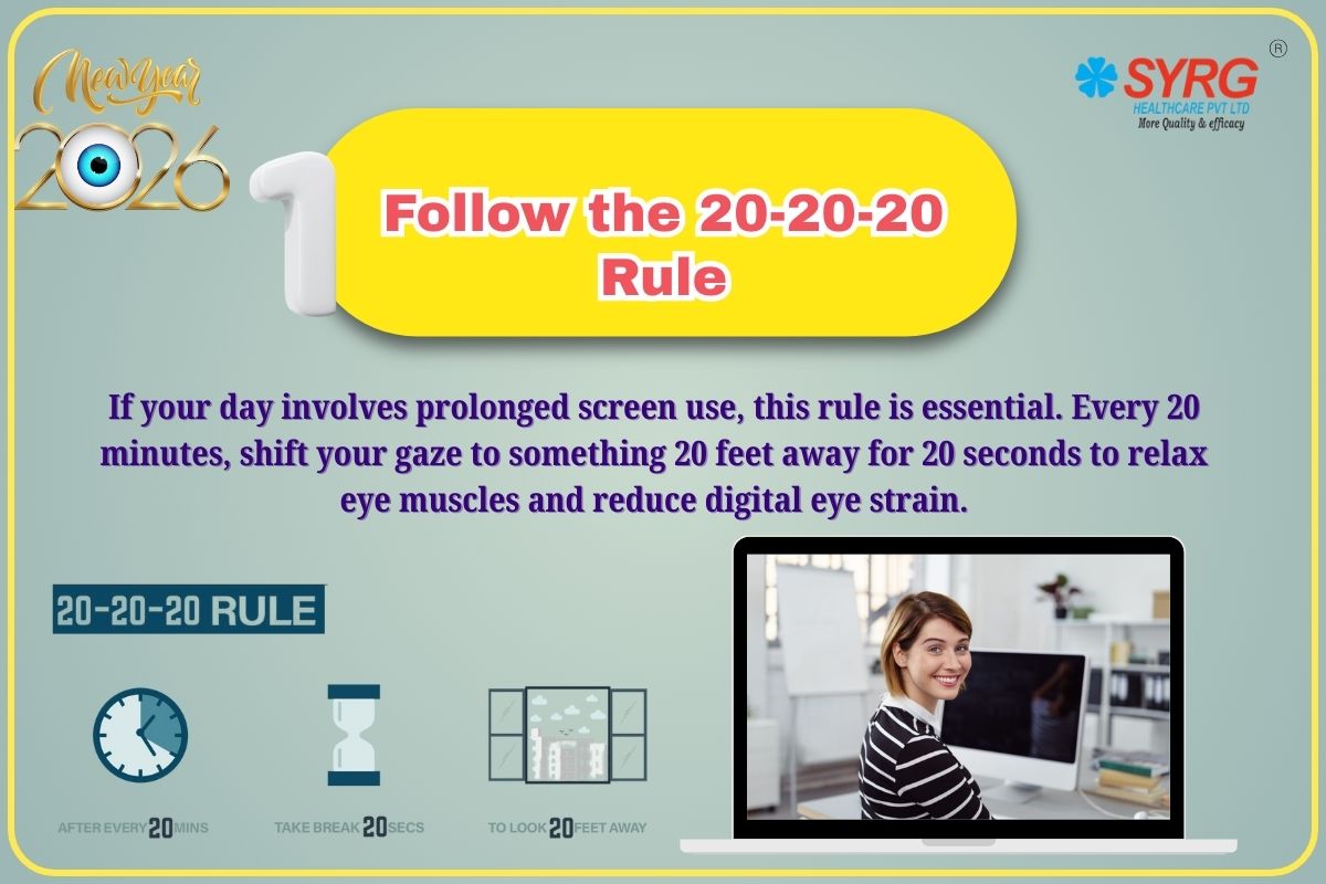 The 20-20-20 rule means taking a break every 20 minutes to look at something 20 feet away for 20 seconds. It relaxes eye muscles and reduces digital eye strain caused by prolonged screen use.