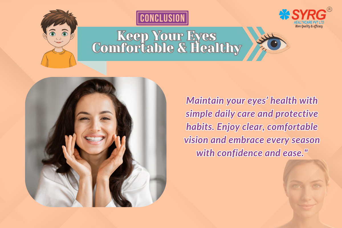 The post-monsoon season is beautiful, but it brings unique challenges for eye health. By understanding environmental changes, recognizing common eye issues, and adopting preventive measures, you can keep your eyes comfortable and healthy. SYRG Healthcare products, when used correctly, offer effective relief and support during this period. Most importantly, listening to your body and seeking timely medical advice ensures that minor irritations don’t develop into serious problems. Make eye care a part of your seasonal routine, and enjoy clear, comfortable vision throughout the year.