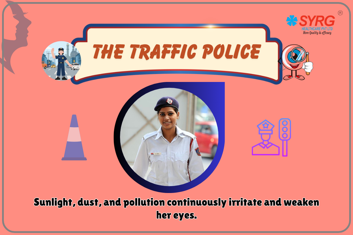 Unlike indoor professionals, traffic police rarely have access to protective eyewear or regular eye care support. Over time, this exposure can lead to chronic eye problems and discomfort.