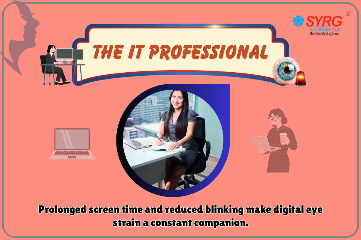 Among all professions, IT professionals face the highest risk of digital eye strain. Long hours in front of computers, coding, meetings, and multitasking lead to continuous screen exposure.
