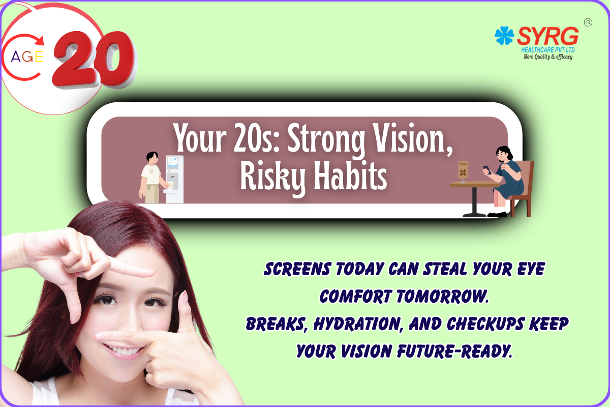 In your 20s, eyes are usually strong and flexible, but this is when harmful habits silently begin. Long hours on laptops and smart phones can lead to digital eye strain and dryness. Reduced blinking while focusing on screens destabilizes the tear film. Many young adults ignore redness, watering, or headaches, assuming they are temporary. Sleep deprivation and improper nutrition further reduce recovery time for the eyes. Contact lens misuse is also more common in this age group. Wearing sunglasses outdoors is crucial to minimize cumulative ultraviolet exposure. Establishing routine eye examinations helps detect hidden power changes early. Practicing ergonomic screen positioning can significantly reduce fatigue. Hydration supports healthy tear production and comfort. Short, frequent visual breaks relax eye muscles. Building awareness now lays the foundation for healthier vision later. What you protect in your 20s often determines how well you see in future decades.