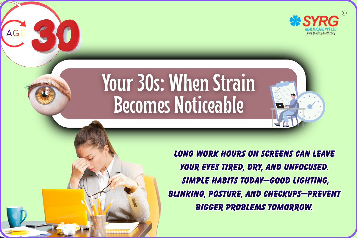 The 30s are often marked by growing responsibilities and extended working hours. Increased device usage means longer periods of near focus with minimal rest. Dryness, irritation, and heaviness of the eyes may become more noticeable. Stress can contribute to muscle tension, affecting visual comfort. Some individuals begin to notice minor fluctuations in clarity during the day. Proper lighting and anti-glare measures can greatly reduce strain. Conscious blinking and scheduled breaks help restore moisture. Regular eye checkups ensure timely updates to prescriptions if required. Nutrition rich in vitamins and antioxidants supports cellular protection. Adequate sleep remains vital for ocular recovery. Awareness of posture and screen distance prevents unnecessary burden. Taking corrective action in this decade can delay progression of many problems. Consistency in care becomes more important than ever.